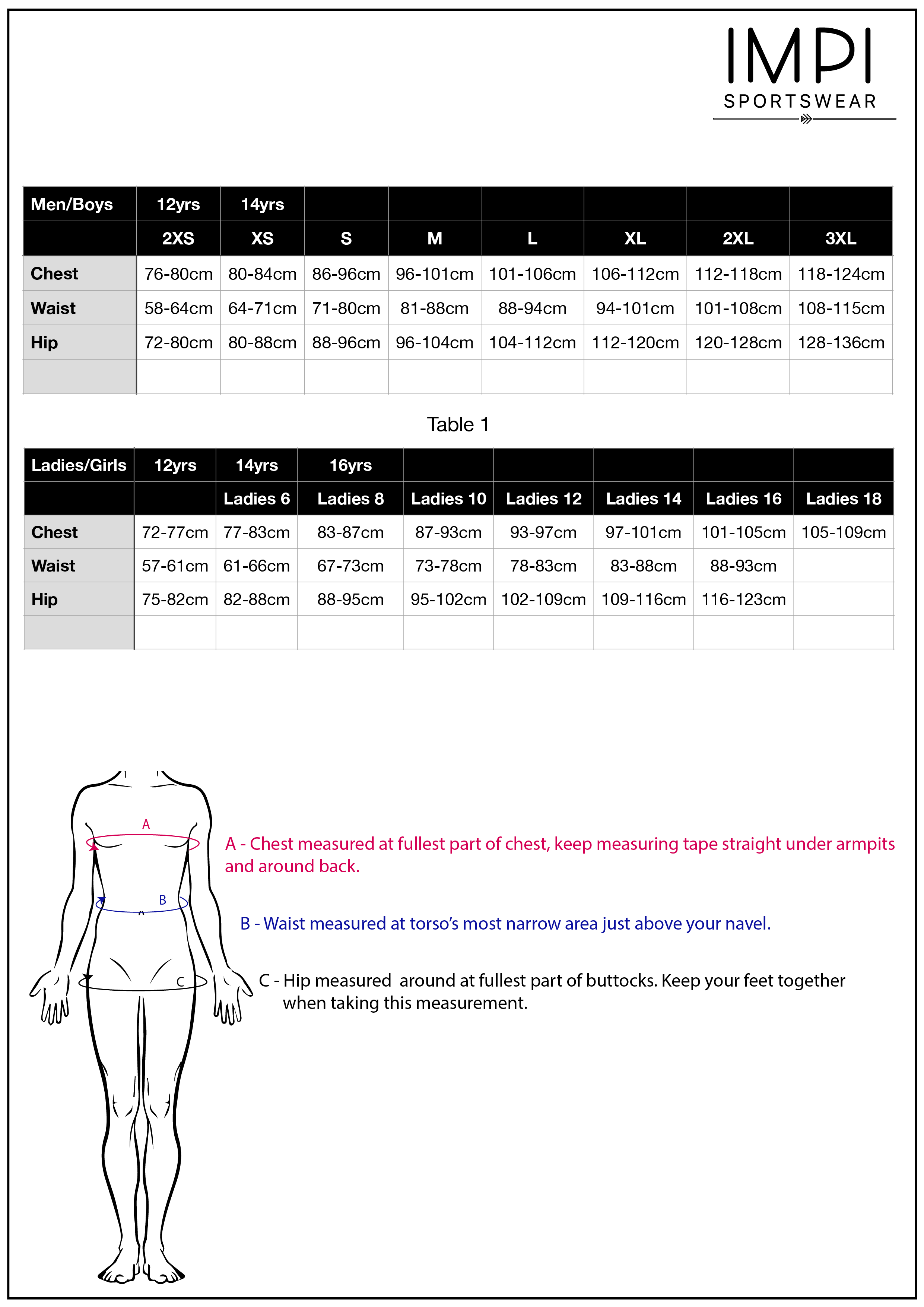 Sizes 2XS-3XL. (Age 12 yrs upwards)