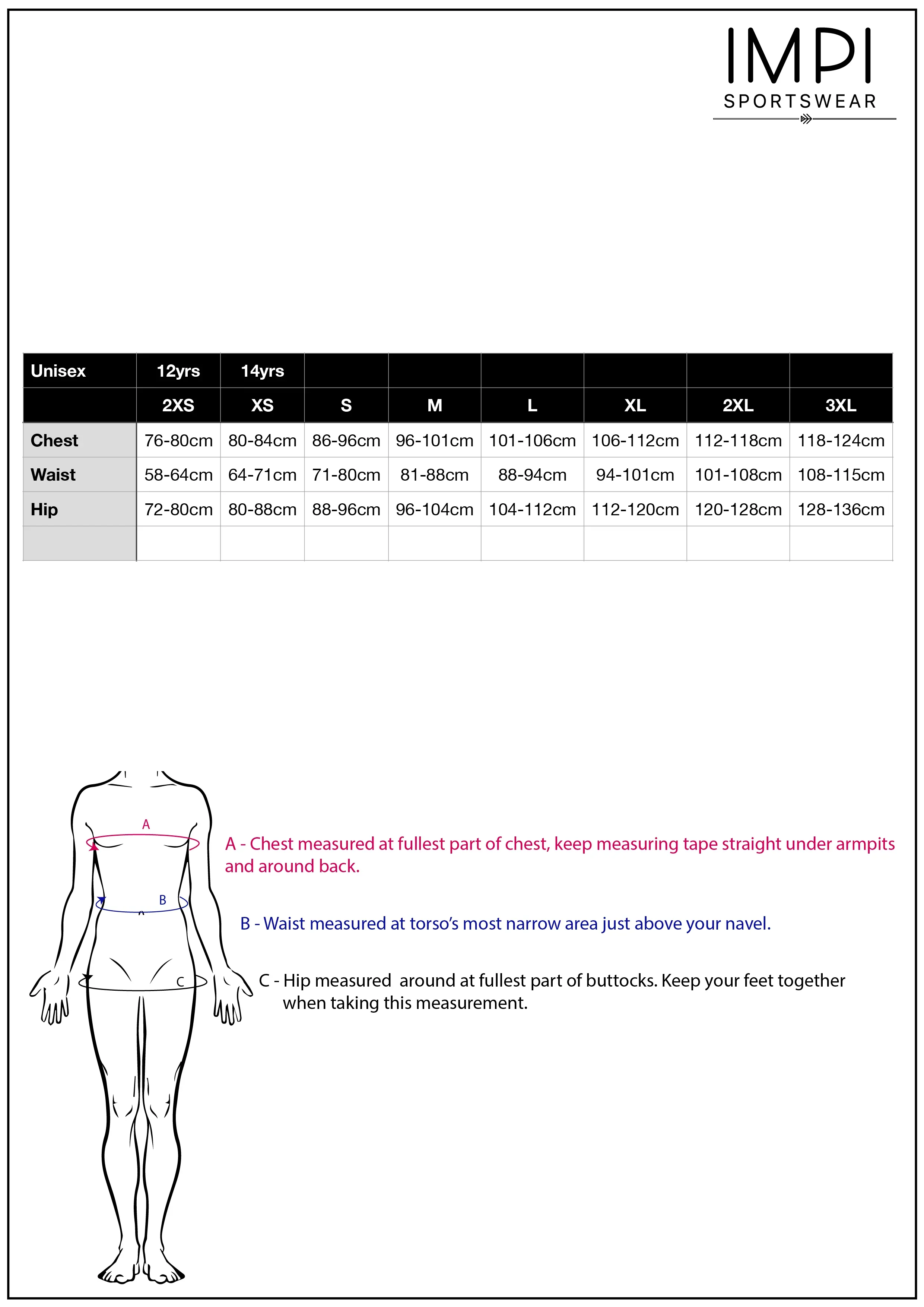 Sizes 2XS-3XL. (Ages 12 yrs upwards)